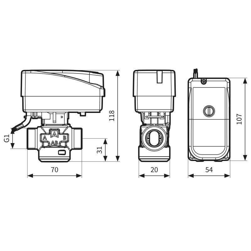 3-ходовий зонний клапан Afriso AZV643 DN20 G1'' kvs 8 230В АС 2 точки з кабелем 1664300