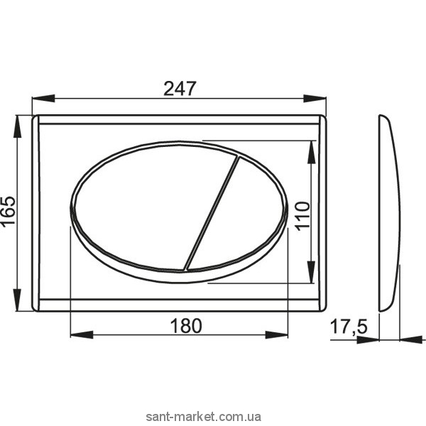 Кнопка змиву М170 для системи інсталяції виконана в білому кольорі з габаритним розміром 247х165х17,5 мм (ширина, висота, глибина). Кнопка з двома клавішами, що забезпечують економічне подвійне зливання води на 3/6 л, привід - механічний.