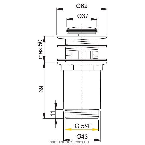 Донний клапан натискний click/clack 5/4” цільнометалевий з малою заглушкою