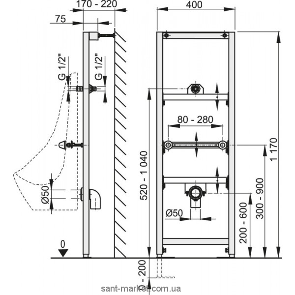 • Інсталяція для пісуара ALCAPLAST A107-1200 (монтажна рама) призначена для встановлення підвісних пісуарів, приймаючи на себе весь тягар санітарної кераміки, що підвішується. Завдяки універсальності конструкції рами підходять до більшості типів виробів, що випускаються різними виробниками.