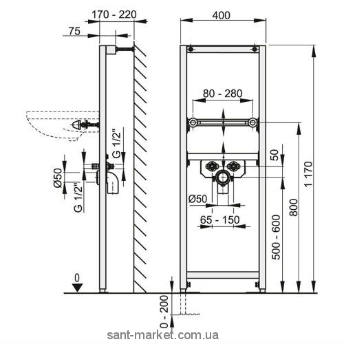 AlcaPlast Інсталяція для умивальника A104 / 1200