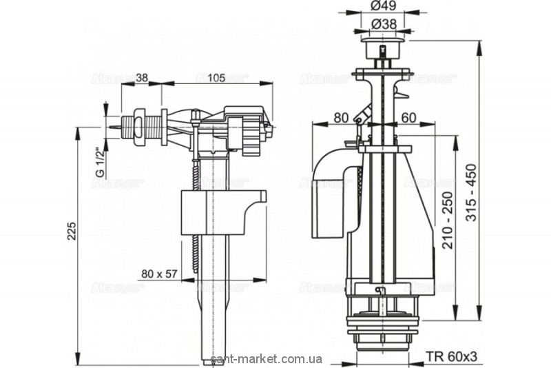 AlcaPlast Випускний комплект з подвійною кнопкою SA08S 1/2 "