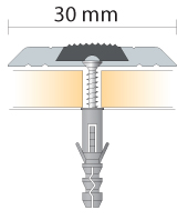 Двоколірний алюмінієвий противоскользящий профіль. Повна безпека і захист країв сходових ступенів. Застосовується на сходових ступенях, на плоских поверхнях для зовнішніх і внутрішніх робіт.
