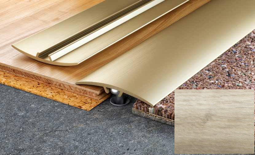 Широкий профіль S11 випуклої форми. Ідеально маскує навіть великі нерівності з'єднання підлог. Непомітна система кріплення гарантує естетичний виглядпрофілю.