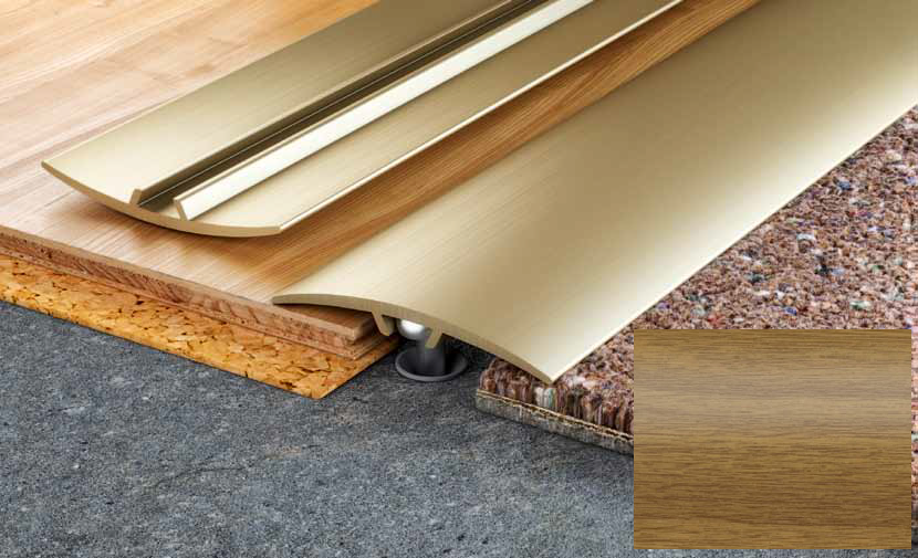 Широкий профіль S11 випуклої форми. Ідеально маскує навіть великі нерівності з'єднання підлог. Непомітна система кріплення гарантує естетичний виглядпрофілю.