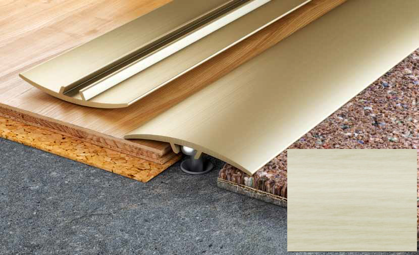 Широкий профіль S11 випуклої форми. Ідеально маскує навіть великі нерівності з'єднання підлог. Непомітна система кріплення гарантує естетичний виглядпрофілю.