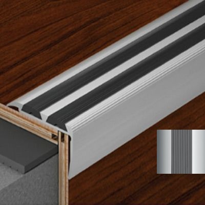 Двоколірний алюмінієвий противоскользящий кут. Повна безпека і захист країв сходових ступенів.