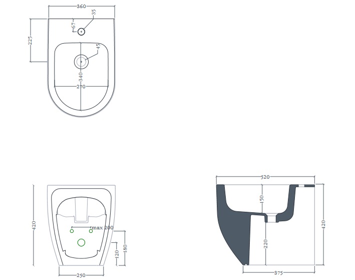 Біде підлогове ArtCeram Monet 36х52 см кераміка чорний матовий
