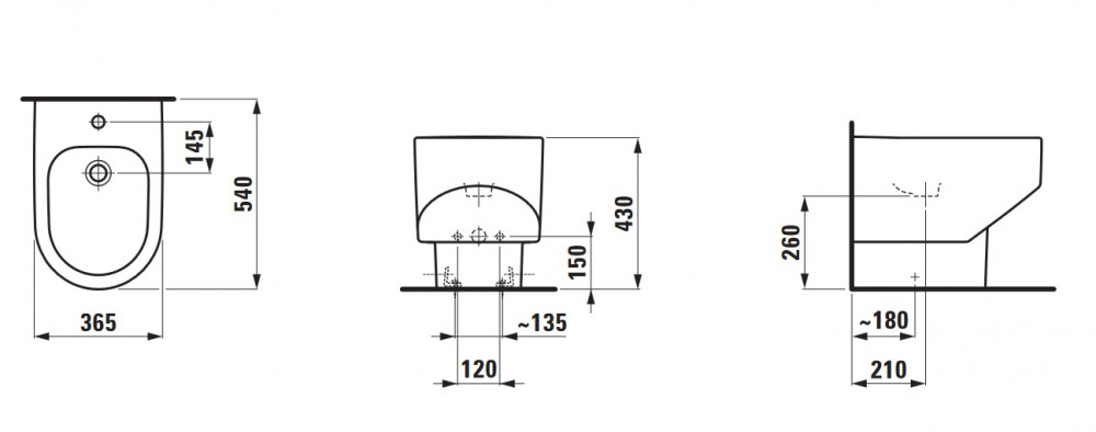 Біде для підлоги Laufen Sonar 36,5х54 см з 1 отвором для змішувача кераміка білий матовий H8323417573021