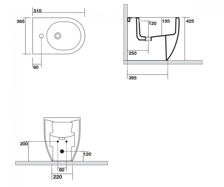 Біде підлогове Axa Glomp 36,5х51 см кераміка білий глянцевий 0202201