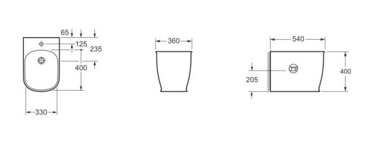 1) Біде підлогове Devit Afina 36х54 см санфаянс білий