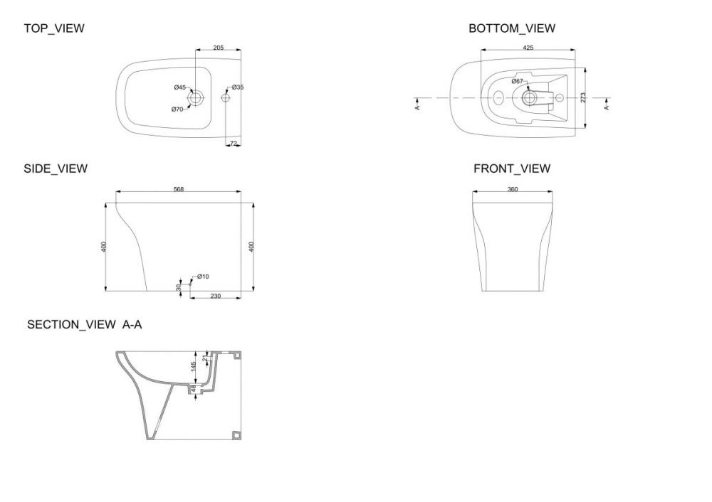 Підлогове біде 2010141 серії Iven від Devit поставляється без сидіння, має отвір для установки змішувача, переливний отвір і оснащується горизонтальним випуском.