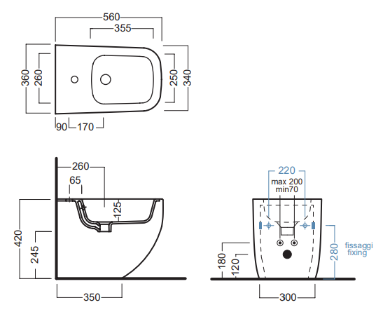 Унітази колекції NEXT оснащуються фірмовим сидінням з кришкою, яка має систему плавного опускання. Біде є моделі в єдиному стилі колекції. Чаша має спеціальний отвір для кріплення змішувача, а також отвір переливу. Зливний отвір, закритого типу, виконане в білому кольорі.
