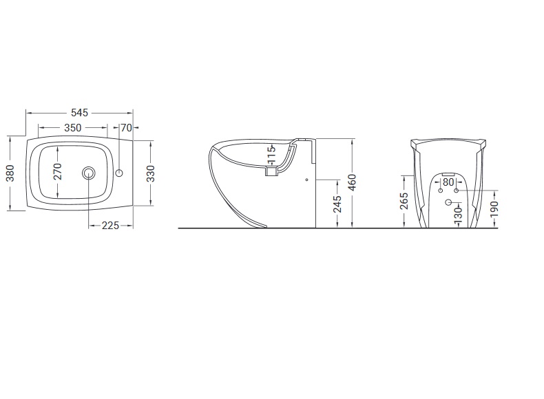 1) Біде підлогове Hidra Hi-Line 38х54,5 см санфаянс чорний матовий мармур