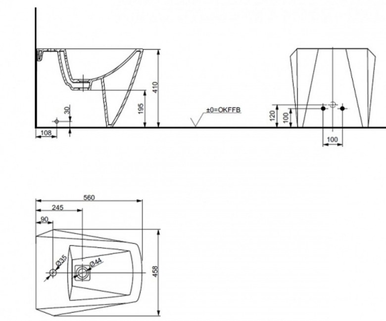 1) Біде підлогове TOTO Jewelhex з переливом кераміка білий