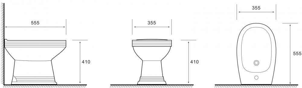 Габарити біде (ВхДхШ): 41 х 55.5 х 35.5 см