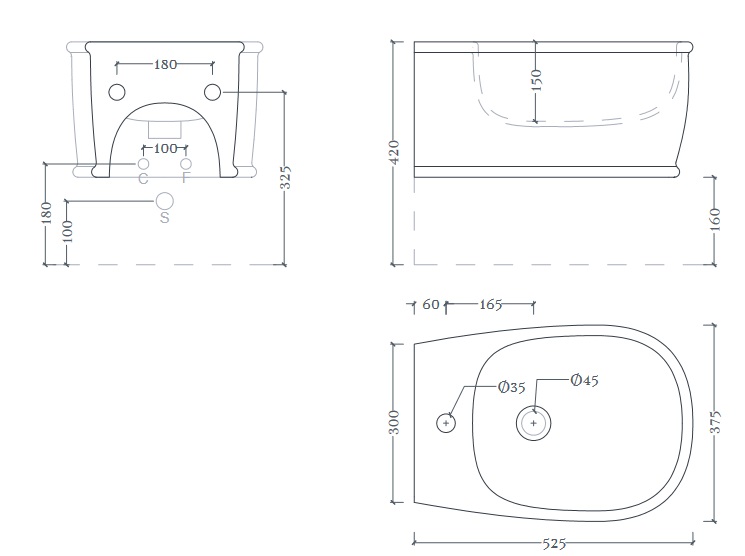 Біде підвісне ArtCeram Atelier 37,5х52,5 см кераміка світло-коричневий ATB001 40;00