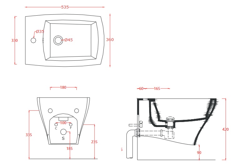 Біде підвісне ArtCeram Jazz 36х53,5 см кераміка чорний матовий JZB001 17;00