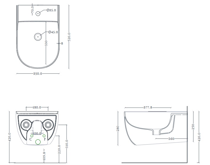 Біде підвісне ArtCeram The One 35х52 см кераміка жовтий
