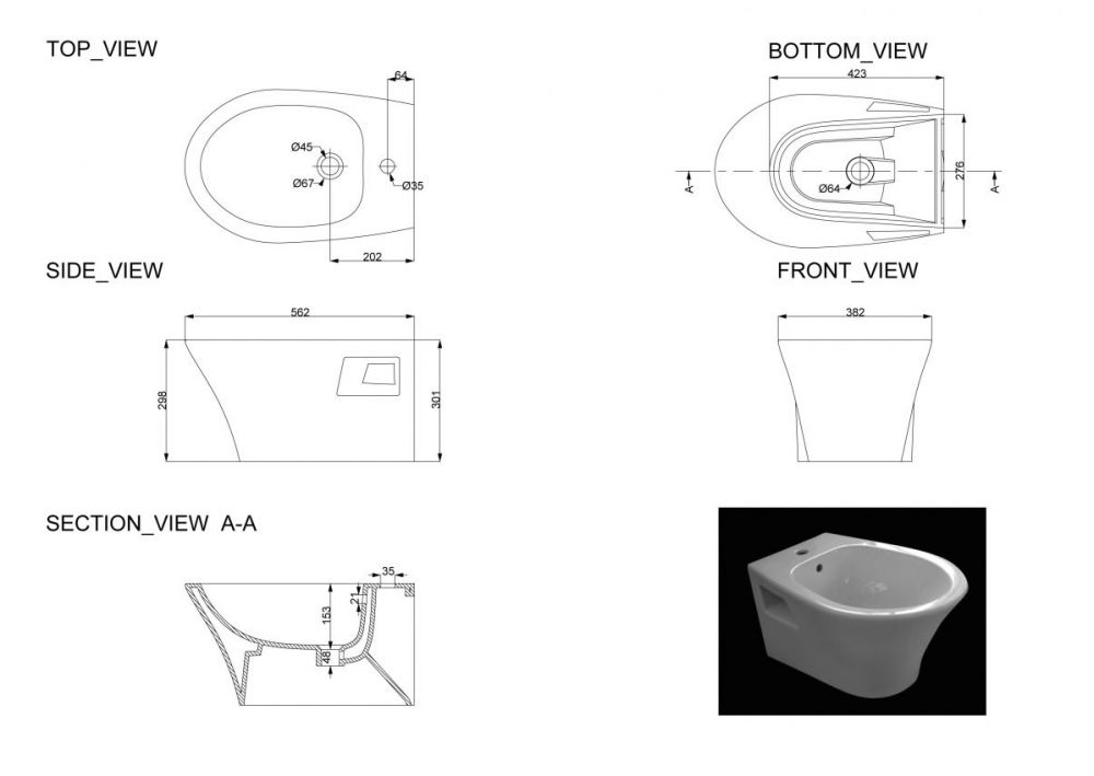 1) Біде підвісне Devit Gredos 38х56 см санфаянс білий