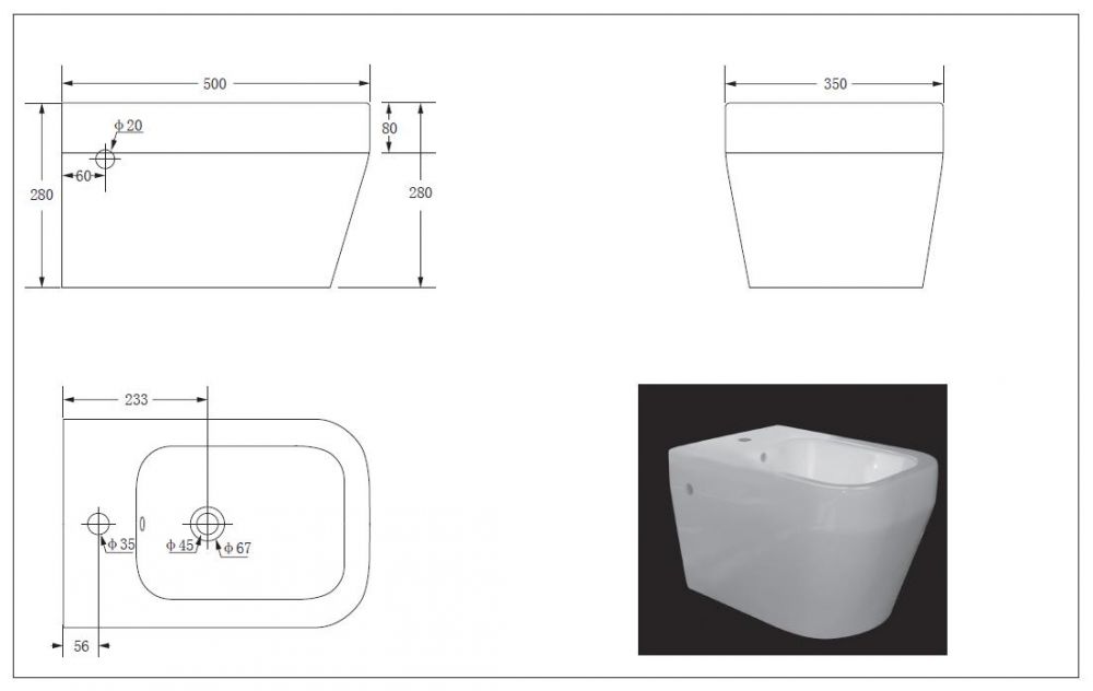 1) Біде підвісне Devit Optima 35х50 см санфаянс білий