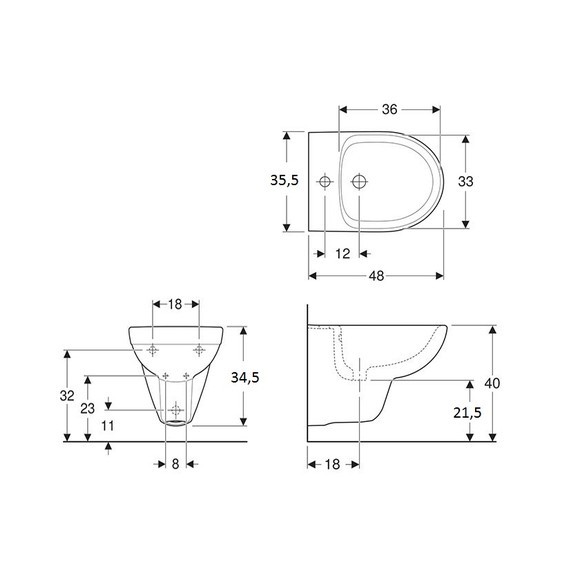 1) Біде підвісне Geberit Selnova Compact 35,5х48 см фарфор білий