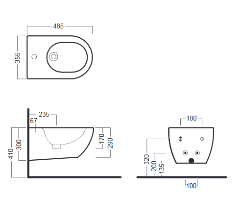 1) Біде підвісне Hatria Fusion 35.5х48.5 см санфарфор білий