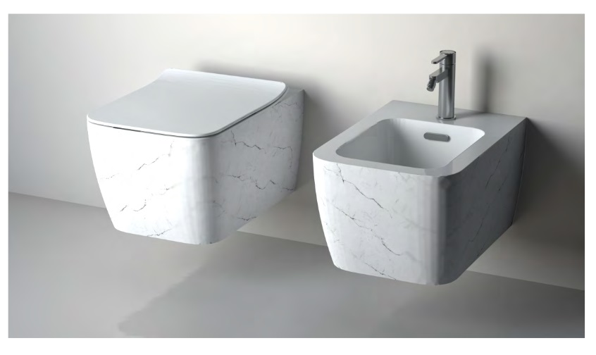Біде підвісне Hidra Faster Kiub 36,5х54 см санфаянс білий матовий мармур KIW14 101 white matt marble