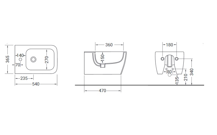 1) Біде підвісне Hidra Faster Kiub 36,5х54 см санфаянс чорний матовий мармур