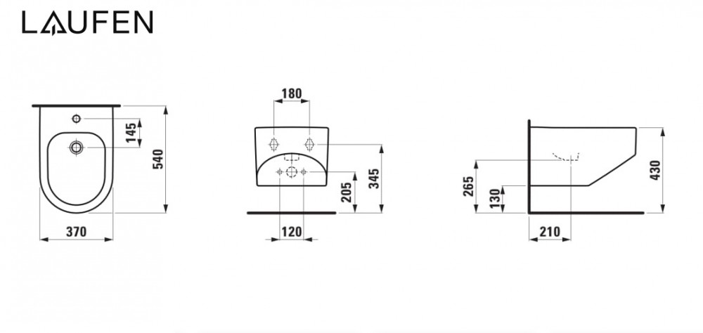 Біде підвісне Laufen Sonar 37х54 см з 1 отвором для змішувача кераміка білий H8303410003021