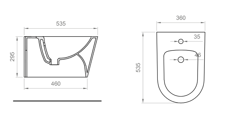 1) Біде підвісне Ponsi Surf 36х53,5 см кераміка білий глянець