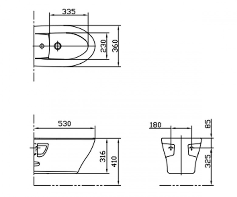 1) Біде підвісне TOTO Le Blanc з переливом кераміка білий
