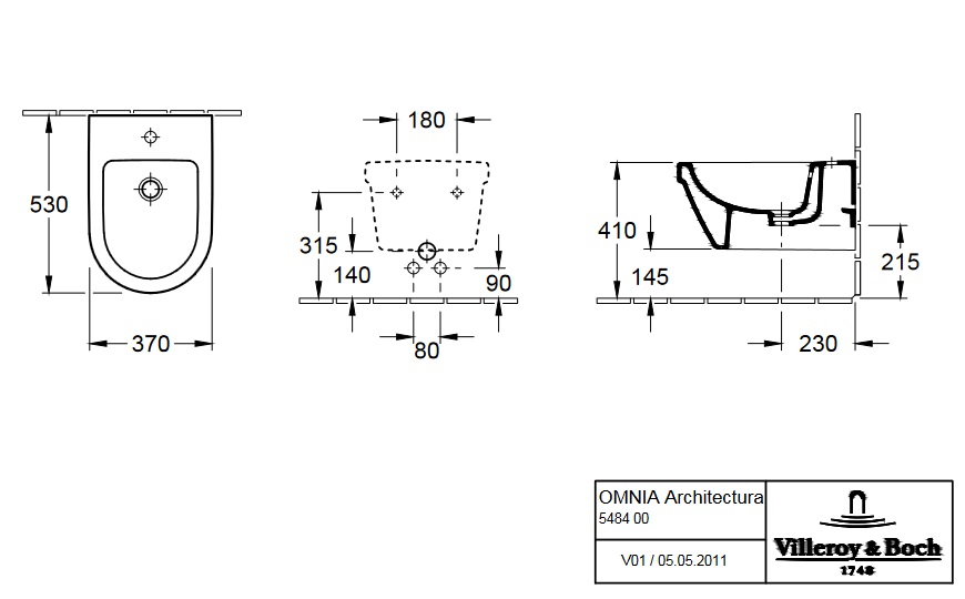 Біде підвісне Villeroy & Boch Architectura 37х53 см санітарна кераміка CeramicPlus альпійський білий 548400R1