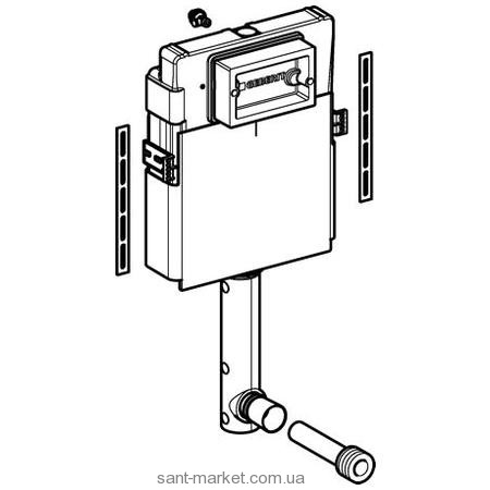 Застінний змивний бачок для установки з підлоговим (приставним) унітазом, фронтальне розташування панелі змиву. Бачок прихованого монтажу Geberit забезпечує необхідну якість та безпеку, відповідаючи при цьому найвищим вимогам у галузі зниження шуму та протипожежного захисту.