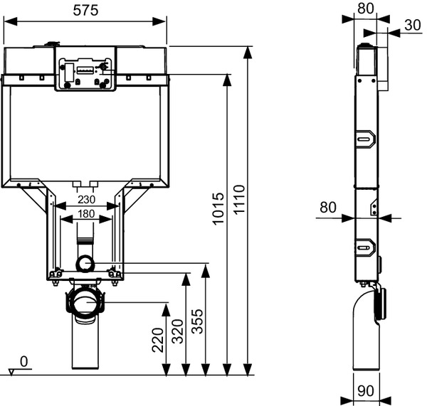 - Може бути встановлений як бачок з одинарним або подвійним змивом залежно від кнопки змиву, що використовується.