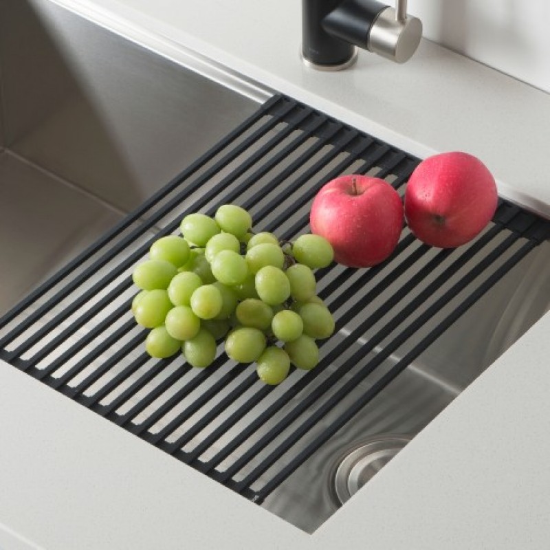 Жодну сучасну кухню не можна уявити без універсальної силіконової сушки від Kraus . Багатофункціональний і необхіднийкухонний аксесуар відрізняється стильним зовнішнім виглядом і універсальністю використання. Встановіть її поверх кухонного миття, щоб промити і висушити свіжі продукти.