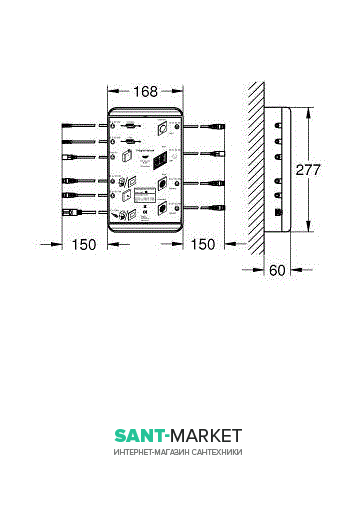 - 2 з'єднання для парового модуля (36362000 або 36368000), що включає 1 підключення для парогенератора і 1 підключення для датчика температури
