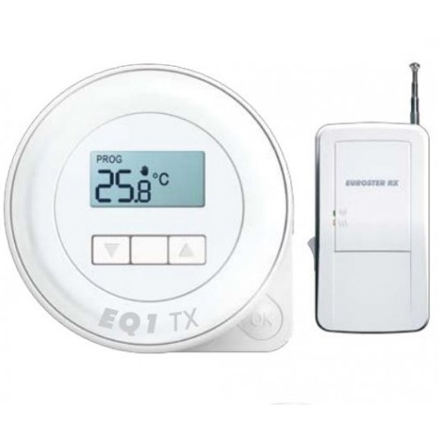 Euroster Q1 - це бездротовий та простий у використанні регулятор температури для всіх пристроїв опалення та кондиціювання. Працює в одному з трьох режимів: режим контролю кімнатної температури, підлоги або кімнатної температури з обмеженням температури підлоги. Euroster Q1 має інноваційну функцію автоматичного зберігання двохтемператур на день, функцію вимкнення регулятора після опалювального сезону та режим тестування для перевірки правильності роботи регулятора.