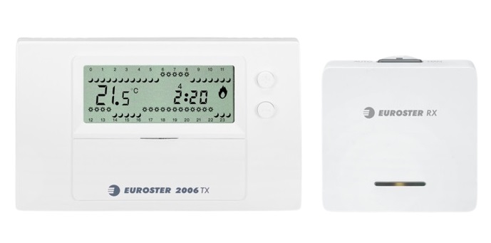 Euroster 2006 - бездротовий регулятор температури в приміщенні, в якому реалізовано спрощене, інтуїтивно зрозуміле програмування з можливістю зміни рівня температури без втручання в програму. Він працює в трьох температурних режимах: денний, нічний та незамерзаючий з можливістю зміни денної та нічної температури. Регулятор можна запрограмувати на семиденний цикл зточністю до 0,5 год (до 48 змін рівня температури на добу). Використовуваний датчик дозволяє зчитувати температуру кожні 0,1°C та програмувати температуру з точністю до 0,2°C.