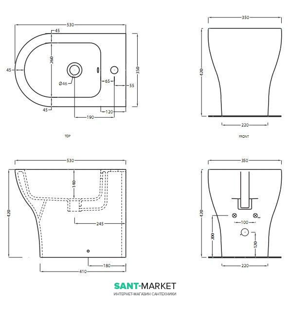 Біде підлогове Cielo ENJOY 35x53x42 см 1 відп. під змішувач біле EJBI