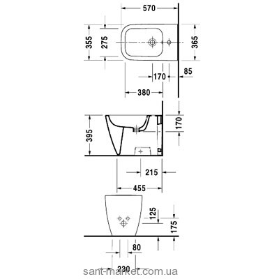 Біде підлогове Duravit колекція Starck 3 57х37х40 з переливом 2280150000