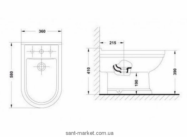 Біде підлогове Gala колекція Noble 58x36х39 з переливом G1236001