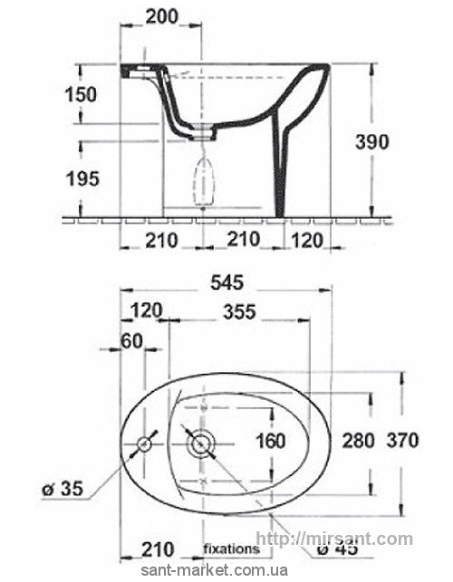 Біде підлогове Jacob Delafon колекція Patio 55х37х39 з переливом EBB0002-00