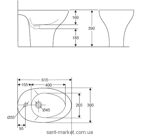 Біде підлогове Jacob Delafon колекція PRESQU'ILE 62х38х39 з переливом E1348-00