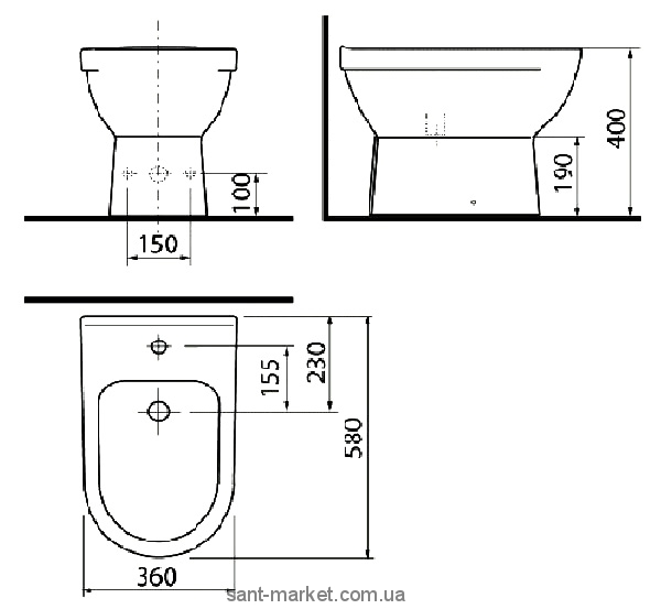 Біде підлогове Jika колекція Mio 58х36х40 з переливом H32712000304