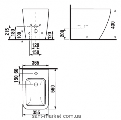 Біде підлогове Jika Pure 56х37х43 з переливом H8324230003021