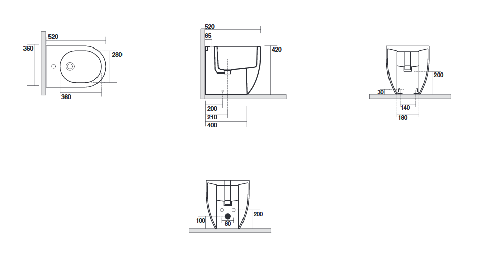 Біде підлогове Kerasan Flo з 1 отвором в комплекті з кріпленням білий 312001