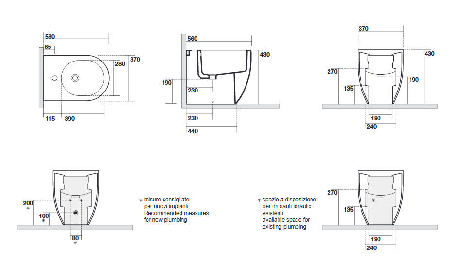 - Біде 56 см підлогове в комплекті з кріпленням Wb5N