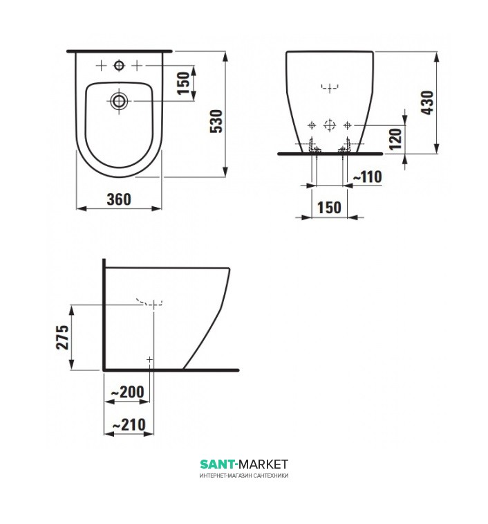 Біде підлогове Laufen колекція PRO 53х36х43 з переливом H8329520003021