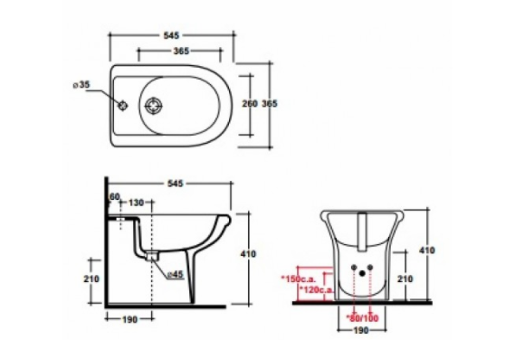 Біде підлогове Olympia колекція Federica 55х37х41 з переливом 05.40